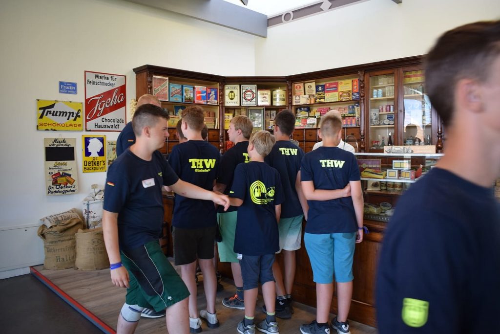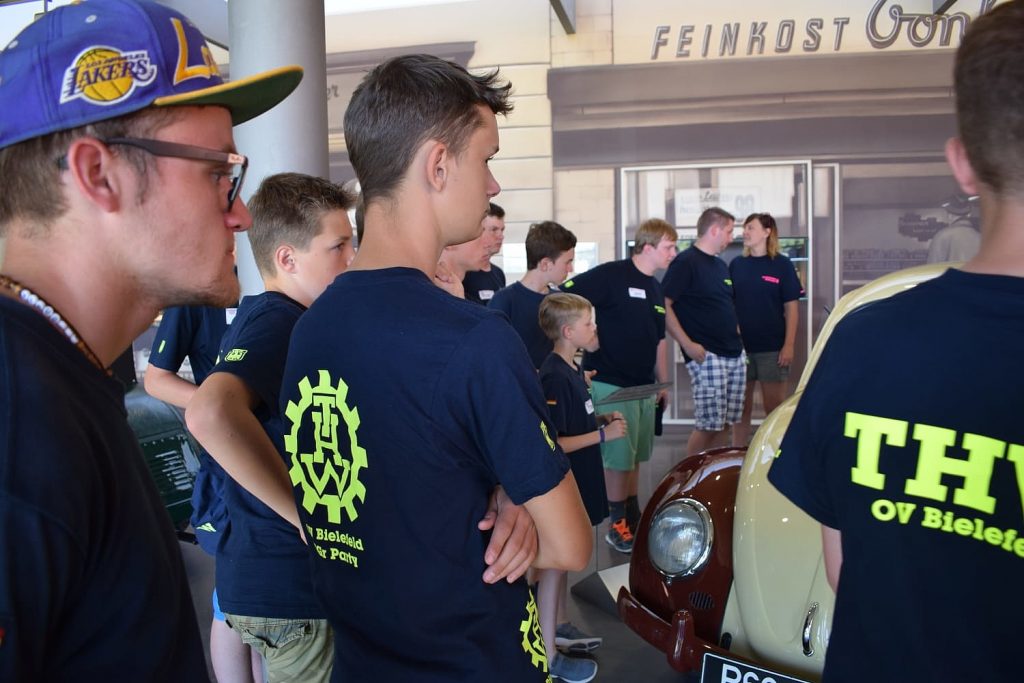 Am Donnerstagmittag sind wir mit dem Bus des Landesverbandes Nordrhein-Westfalen vom THW vom Zeltplatz in Schloß Holte-Stukenbrock nach Bielefeld in die Dr. Oetker-Welt aufgebrochen. Als erstes wurde uns ein Film über die Anfänge Dr. Oetkers sowie über die heutige Dr. Oetker-Versuchsküche gezeigt. Im Anschluss ging es über die Himmelsleiter, der Treppe in dem Foyer der Dr. Oetker-Welt, in das oberste Stockwerk, wo wir uns eine nachgebaute Apotheke sowie alte Dienstfahrzeuge von Herrn Dr. August Oetker anschauen konnten.